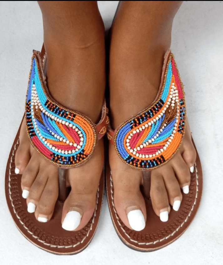 Handcrafted Arap Maasai Summer Sandals. Merging centuries-old tradition with contemporary summer style, these sandals are more than just footwear—they are wearable art.